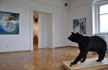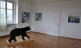 Sylvie Proidl begins with the Wild Men series, resembling colorful official portraits in frontal perspective, but with the typical insignia of poachers … the kill and the weapon. The second room harbors the shadow installation rainforest up in the air, which depicts the threats that the rainforest poses to humans. The next room is devoted to fleeing and escape; the oil paintings from the series Walking on the moon and the Canadian bear complement each other perfectly. In the red room, the artist focuses on the endangered Amazon and the culture of this region's indigenous people, the hunt of commercial interests for irreplaceable resources. The final piece is the oil painting Katarakt2, a powerful synonym for nature's instability and might.