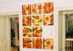 großen Tuscharbeiten aus dem Zyklus Schwarze Fischlein mit der dreidimensionalen Stoffmitte